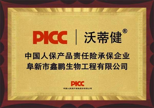 阜新市鑫鵬生物工程有限公司旗下沃蒂健、黑晶尖、芯霸、鑫鵬沃普爾、田寶畝、久畝神、九畝神、炭精神、稔如意、棚地神、松峰山、金禾財有根等系列產(chǎn)品,順利通過PICC中國人民保險審核,為企業(yè)全線產(chǎn)品承保產(chǎn)品責任險,證明公司產(chǎn)品的真實、合格,也標志著阜新市鑫鵬生物工程有限公司為消費者提供安全保障的決心。